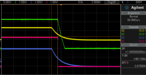 步骤2:将可调电源快速调高至超过OVP阈值(例如从额定12V直接跳变至20V),用示波器捕捉VOUT从正常值跌落到0V的波形。